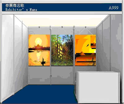 在標(biāo)準(zhǔn)展位正向上部提供寫有中英文參展商名稱和展位號(hào)的楣板,楣板高度一般為20cm;